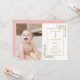 Una invitación de cumpleaños número 1 con estilo con un fondo rosa bebé en el reverso. Diseñado por Thisisnotme©