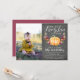 Enamórate de estas adorables invitaciones de cumpleaños infantiles rústicas que presentan una foto favorita en el lado izquierdo. El diseño presenta una calabaza de acuarela naranja adornada con flores de color burdeos, rosa y naranja y follaje verde sobre un fondo de pizarra. "Nuestro pequeño calabacín está cumpliendo" aparece en la parte superior en letras de caligrafía chic, con la edad de tu hijo inscrita en la calabaza. La muestra se muestra para un primer cumpleaños. Personaliza con los detalles de tu fiesta de cumpleaños debajo en letras blancas.