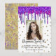 Invitación Foto de Cumpleaños Sweet 16 Brillo Rosa Purpura Go