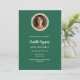 Para una elegante fiesta de cumpleaños número 40 (o cualquier edad). Un fondo verde esmeralda. Personalice y agregue un nombre y detalles del fiesta. Añade tu foto al marco falso del diamante dorado. El nombre se escribe con un guión de estilo con letras a mano