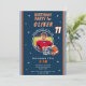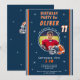 Invitación de cumpleaños con foto de dibujos animados de casco de fútbol. Divertida y moderna invitación de cumpleaños de fútbol. Con una audaz ilustración de dibujos animados de un balón y casco de fútbol. Con una vibrante ilustración de un clásico balón de fútbol rojo y un elegante casco en colores naranja y gris sobre un fondo azul fresco con estrellas blancas, esta invitación es perfecta para cualquier niño o niña amante del deporte en su cumpleaños. Totalmente personalizable: agregue los detalles de su evento y foto.