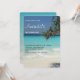 Una invitación de cumpleaños con una fotografía hermosa y serena. Aguas del océano azul tropical turquesa, con una playa de arena blanca. Un solo árbol tropical proporciona un buen lugar para relajarse y disfrutar de este lugar idílico.