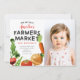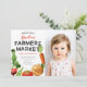 Pequeños granjeros comercializan el tema de la carta de la invitación de cumpleaños con ilustraciones a mano de brotes de brussel, zanahoria, cebolla, tomate, guisantes dulces, latido. El texto de arriba dice "¡sólo un día!" ¡Perfecto para un fiesta de niños de la zona! Esta tarjeta también le permite insertar la imagen de su hijo.