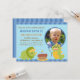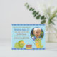 Personalizado lindo de Dino verde y amarillo con picos redondeados y triceratops, ambos sonriendo tan alegremente que no puedes resistirte a sonreír también. Todas son sonrisas porque es una celebración de cumpleaños con una torta de chocolate en el medio con una vela de rayas azules y blancas en el pastel. El dinosaurio se aferra a un globo que se puede personalizar con la foto del chico de cumpleaños. La paleta de colores azul y verde hace de esto una invitación adecuada para un chico de cumpleaños para una gran fiesta de cumpleaños con el tema de los dinosaurios!