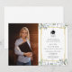 Con delicadas hojas de vegetación de acuarela y un borde geométrico dorado, esta invitación de fiesta de graduación elegante se puede personalizar con la foto de tu graduado y los detalles de la celebración. Diseñado por Thisisnotme