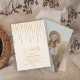 Impresiona con estos falsos detalles purpurinas de oro la clase de invitaciones a fiestas de graduación 2022. Personaliza fácilmente con tus detalles importantes en la parte delantera y tu foto en la parte posterior de la tarjeta. Ideal para eventos de alto nivel y colegiados.