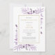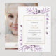 Una elegante invitación de recuerdo de funeral de celebración de vida personalizada con follaje botánico de acuarela púrpura. Diseñado por Thisisnotme©