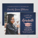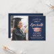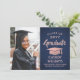 Anunciar una graduación de secundaria o universitaria e invitar a familiares y amigos a celebrar con invitaciones de fiesta color azul marino y rosa, con fotos de personalizados. La imagen y la redacción son fáciles de personalizar y los colores son fáciles de cambiar con la herramienta de diseño de Zazzle. Esta plantilla descargable se configura como una tarjeta de invitación combinada y una invitación de fiesta que se puede personalizar con cualquier detalle de su elección, como los nombres de los padres, honores especiales, título de grado, presupuesto inspirador favorito, planes futuros de graduados o nueva dirección. El diseño presenta un fondo oscuro azul marino, un falso gorro de Relieve metalizado dorado rosa, caligrafía moderna y elegante, una tipografía vintage clásica y una foto favorita, como una foto senior o una imagen de la ceremonia de graduación. Por favor, tenga en cuenta que el oro rosa está impreso en color rosa, no en Relieve metalizado metálico. Esta tarjeta de graduación imprimible es una manera elegante de anunciar una celebración especial del día. ¡Felicitaciones al graduado!
