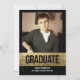 Fondo negro regio, marco negro elegante con efecto de lámina dorada y recorte "Graduado" perfectamente personalizado con el nombre del graduado, escuela y foto. La imagen impresa con hoja dorada es sofisticada y elegante para celebrar el tremendo logro del graduado masculino o de cualquier persona.