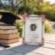 ¡Celebre su graduación con estilo con nuestra elegante tarjeta de invitación! El diseño floral de acuarela rosa y naranja, completo con una foto personalizada y texto personalizado en fuente de letra clásica, lo convierte en una opción perfecta para su día especial. Muestre su logro con sofisticación y estilo personal.
