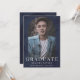 Los anuncios de graduación de un chico azul marino con fotos de un arco moderno son la adición perfecta a cualquier graduación de secundaria o universitaria. Estas tarjetas presentan un diseño sencillo y a la moda que se verá muy bien con los demás materiales de graduación.