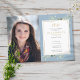 Con delicadas hojas de color agua verde sobre un polvoriento fondo azul, esta invitación a una fiesta de graduación de doctorado en moda puede ser personalizada con sus detalles de foto de grado y celebración. Diseñado por Thisisnotme©