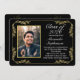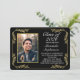 Borde decorativo ordenado en oro sobre negro. Añada su foto a esta invitación personalizado tradicional, sencilla y tradicional, con fondo negro sólido y hojas frondosas enmarcadas en un tono dorado de aspecto metálico. Elegante Graduación con Clásico Negro/Oro para graduados masculinos o femeninos.