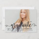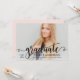 Permita que el retrato de su senior brille con esta invitación de fiesta de graduación moderna con un barrido de caligrafía negra "graduada" superpuesta en una foto de sangrado total. La parte posterior rosa suave combina caligrafía y tipografía serif para mantener todos los detalles de su fiesta bellamente organizados. Texto totalmente personalizable en ambos lados hace que la personalización sea sin esfuerzo.
