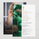 Esta elegante invitación de celebración y recuerdo cristiano floral verde esmeralda y dorada puede ser personalizada con su información en tipografía clásica y una foto especial en el reverso. Diseñado por Thisisnotme©