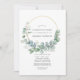 Invitación a la celebración de la vida con marco geométrico dorado y personalizable inverso a los detalles del evento.