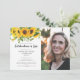 Celebración de la invitación de la Vida con hermosos girasoles y espacio para una fotografía favorita. Todos los detalles se pueden personalizar.