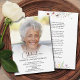 Una celebración de la invitación a la vida incluye una foto de tu ser querido, su nombre y detalles en el frente. En la parte de atrás hay un lugar para una oración, un poema o su obituario resaltado con delgadas flores de vientre. COINCIDIENDO elementos de nuestra colección.