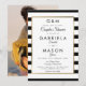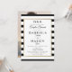 Con un clásico fondo de franja en blanco y negro, esta elegante invitación para la ducha de los novios tiene un borde de falso foil dorado que enmarca los detalles de la ducha de su pareja en tipografía moderna y chic y su foto especial en el reverso. Diseñado por Thisisnotme
