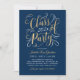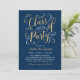 Celebre con estilo con esta elegante invitación de fiesta de graduación que presenta el texto “Class of 2026 Party” en oro sobre un fondo azul marino profundo. El reverso coordinado muestra un diseño de foto enmarcada con un estilo azul marino a juego. Un look de caligrafía moderna clásica para celebraciones de apertura de puertas de escuela secundaria.