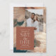 Resumen pintado moderno y verde azulado casamiento de moda de terracota crema para salvar la tarjeta de cita. Moderno en la tendencia serif texto y rust terracota backer. foto guardar la fecha