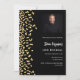 Moderna, elegante e invitada. Un fondo negro decorado con un falso confeti dorado. Personalice y agregue la foto, un nombre y detalles del fiesta. Texto blanco.