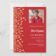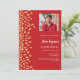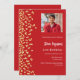 Moderna, elegante e invitada. Un fondo rojo decorado con un falso confeti dorado. Personalice y agregue la foto, un nombre y detalles del fiesta. Texto blanco.