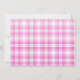 Una invitación a una fiesta de Navidad con un adorable perro de Navidad que lleva una corbata de lazo de cuadros rosa linda. Sentado dentro de una caja de sombrero. Un árbol blanco decorado con luces rosadas en el fondo. Las luces están borrosas lo que le da un efecto bokeh mágico. Fotografía encantadora con tema de Navidad.