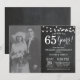 Invitación de aniversario de bodas 65 con foto personalizada. Fondo de pizarra. Luces de cuerda. Blanco y negro. 1, 2, 3, 4, 5, 10, 15, 20, 25, 30, 35, 40, 45, 50, 55, 60, 65, 70, 75, 80, Cualquier año. Cumpleaños de adulto. Cumpleaños de hombre o mujer. Fiesta de cumpleaños masculina. Para una mayor personalización, haga clic en el botón "Personalízalo" y use nuestra herramienta de diseño para modificar esta plantilla.