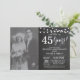 Invitación del 45º aniversario de bodas con foto personalizada. Fondo de pizarra. Luces de cuerda. Blanco y negro. 1º, 2º, 3º, 4º, 5º, 10º, 15º, 20º, 25º, 30º, 35º, 40º, 45º, 50º, 55º, 60º, 65º, 70º, 75º, 80º, Cualquier año. Cumpleaños adulto. Cumpleaños de mujer u hombre. Fiesta de cumpleaños masculina. Para una mayor personalización, haga clic en el botón "Personalizar" y use nuestra herramienta de diseño para modificar esta plantilla.
