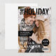 Invitaciones de fiesta de Navidad inspiradas en revistas con una foto de portada completa de los anfitriones junto con el titular "la edición de fiestas", la invitación también incluye una plantilla de texto con estilo que es fácil de personalizar con detalles de la fiesta como fecha, hora y ubicación.