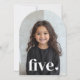¡Celebra el día especial de tu hijo con esta invitación en forma de arco moderno! Con la foto y la edad de su pequeña persona en tipografía audaz en la parte delantera junto a un pequeño corazón, además de elegantes detalles minimalistas en la parte trasera, este diseño es perfecto para una moda y un fiesta memorable.