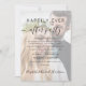 Anuncio de boda íntima y elegante e invitación a recepción posterior al matrimonio para anunciar su matrimonio a familiares y amigos y para invitarlos a una recepción o fiesta posterior a la boda. El anuncio de boda personalizado y la invitación superpone su foto del día de la boda, y "Fiesta Felices para siempre" está escrito en una mezcla de tipografía simple y una escritura de moda con florituras.