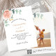 Decorada con rosa de oro y floral rosa, flor rosa y hojas de eucalipto de color verde acuático, brotes, vegetación y brotes de oro falsos. Personalice y agregue sus nombres y detalles del boda. Atrás: agrega tu foto dentro del marco de arco, URL del sitio web boda al código QR para más detalles y/o RSVP.