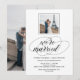 Esta elegante invitación dice "nos casamos" en caligrafía negra ornamentada, y es la forma perfecta de anunciar su boda e invitar a los invitados a una ceremonia posterior a la boda. Agrega una foto al frente y al dorso.