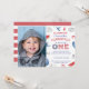 Diseño de invitaciones para tarjetas de fotos de cumpleaños de Patriotic Stars and Stripes. Este diseño está diseñado para cuando no se puede tener un fiesta físico pero aún así se quiere celebrar.