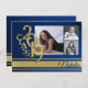 Invitación a franjas de variabilidad en azul y oro 2019. Se pueden añadir tres fotos a esta clase festiva de 2019, invitación a graduación o invitación en azul. Personalizar de texto en la parte posterior para que se ajuste a sus necesidades.