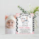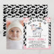 Foto de vaca: ¿has oído hablar de la vaca de la copa de invitado de primer cumpleaños de Moos o has escuchado la invitación de primer cumpleaños de una bebé con una linda vaca blanca y negra y un falso número de oro y una foto. Esta invitación para el primer cumpleaños del chica también incluye un audaz patrón de impresión de vacas, un patrón de mantas rosadas y algunos encantadores rosas florales rosas.