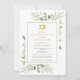 Una elegante invitación de recuerdo de celebración de vida funeral judía con follaje botánico de acuarela.