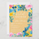 Rústico boho amarillo audaz verano floral foto de la ducha de novia con flores de campo salvaje pintadas de azul, amarillos, rosas rosas rosas rosas rosas, eucalipto verde sabio sobre azul cielo editable. Ideal para el verano, bodas al aire libre.