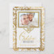 Espléndida invitación para invitar a 50 años de familiares y amigos a celebrar su aniversario de bodas de oro. Hecho en tonos dorados y con un acento de hoja de oro digital. Personalice con una foto de la pareja del 50º aniversario y personalice con todos los detalles del evento.