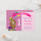 Celebra a tu dulce bebé con esta hermosa invitación de fiesta de cumpleaños. El diseño muestra un adorable búho con globos coloridos, flores rosas y azul claro como fondo.