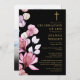 Esta elegante, dorada y negra celebración cristiana floral rosa de la vida y la invitación a la conmemoración se puede personalizar con su información en tipografía clásica y una foto del ser querido al revés. Diseñado por Thisisnotme©