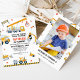 Foto Stop The Traffic Construction Birthday Invitation Cualquier edad de la invitación para el cumpleaños de un niño de la construcción de carreteras que incluya varios vehículos de construcción, grúas, excavadoras y camiones, así como una foto en la parte trasera. Esta parada de la invitación al cumpleaños del tráfico también incluye varias señales de tráfico.