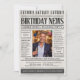 Esta invitación para la fiesta de cumpleaños número 50 está diseñada como un periódico clásico para darle un toque único y divertido. Incluye titulares llamativos como "Noticias de cumpleaños" y "Mira quién está cumpliendo cincuenta", además de un área para foto que puede ser reemplazada con tu propia imagen.