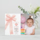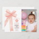 Foto Editable Diseño de Invitación de Cumpleaños de Chicas de Peach Bow. Perfecto para niños o chicas. Atrás incluido.