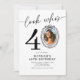 Celebre un hito increíble con estilo refinado y atemporal con esta elegante invitación de cumpleaños con la foto de "Mira quién cumple 40". Con un diseño limpio y moderno, el diseño destaca la foto elegida dentro de un delicado marco ilustrado, terminado con un detalle de lazo suave para un toque encantador y elegante.