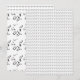 El diseño parece ser un patrón continuo con formas negras sobre un fondo blanco. Estas formas se repiten en toda la imagen, creando un diseño uniforme.
