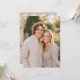 Esta invitación de boda presenta una fotografía cálida y sincera de dos personas que se mantienen muy juntas en un entorno al aire libre con una suave iluminación natural. La paleta de colores incluye tonos suaves como beige claro y matices pastel, creando una estética suave e invitante. El diseño captura un ambiente alegre y afectuoso, enfatizando la calidez y la conexión entre los sujetos. Perfecta para parejas que buscan una representación realista y auténtica de su día especial, esta invitación evoca sentimientos de felicidad e intimidad.
