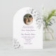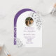 Celebra tu día con esta elegante invitación de boda con arco que presenta un refinado fondo púrpura, delicado arte lineal floral blanco y una hermosa foto enmarcada de la pareja. La forma de arco moderna proporciona un aspecto elegante y sofisticado, mientras que el diseño minimalista mantiene todos los detalles fáciles de leer.